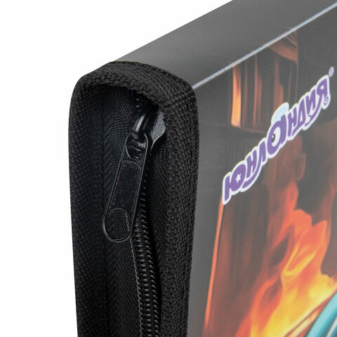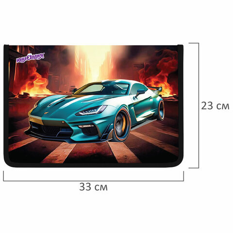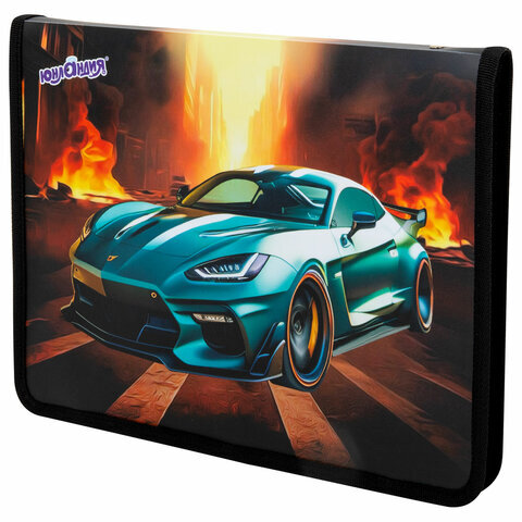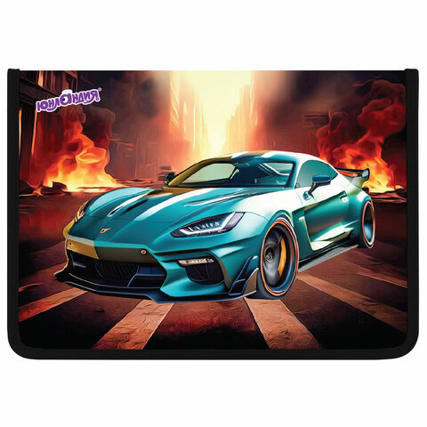 Папка для труда на молнии ЮНЛАНДИЯ А4, 1 отделение, откидная планка, органайзер, "Fire car", 272223