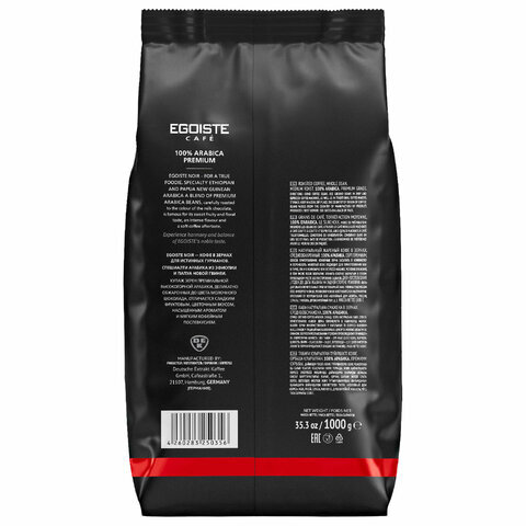 Кофе в зернах EGOISTE "Noir" 1 кг, арабика 100%, ГЕРМАНИЯ, 12621