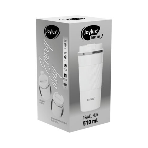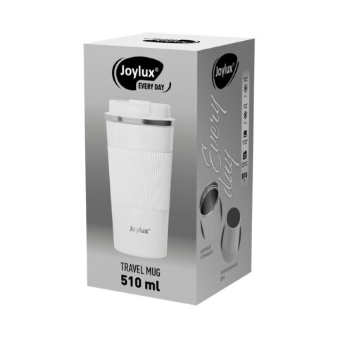 Термокружка 510 мл JOYLUX (ДЖОЙЛЮКС) EVERY DAY, нержавеющая сталь SUS304, силиконовый рукав, белый матовый, 700293