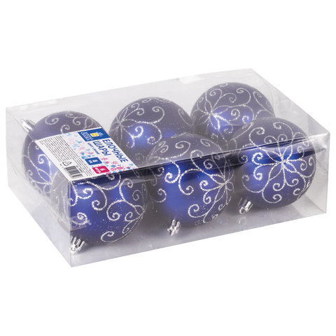 Шары ёлочные 6 шт., 8 см, "Basic Art", пластик, цвет: синий/белый, ЗОЛОТАЯ СКАЗКА, 590892