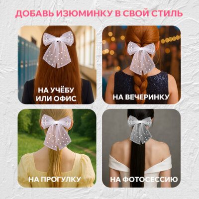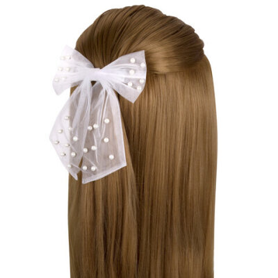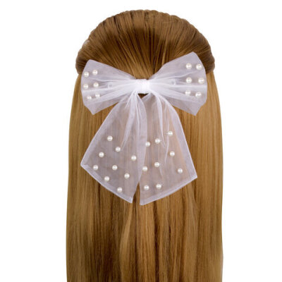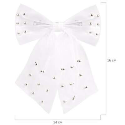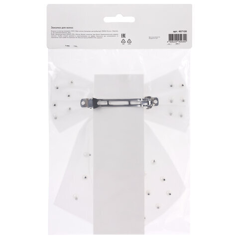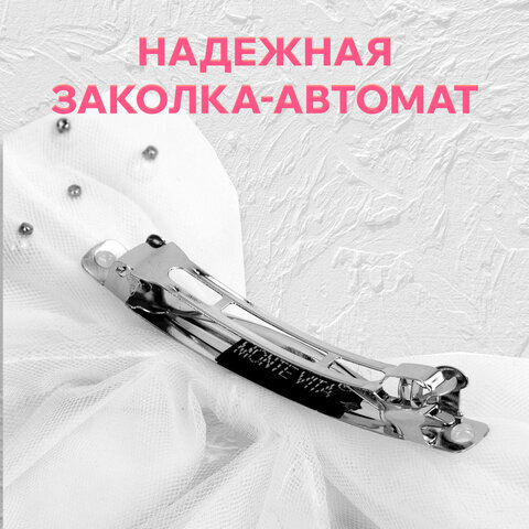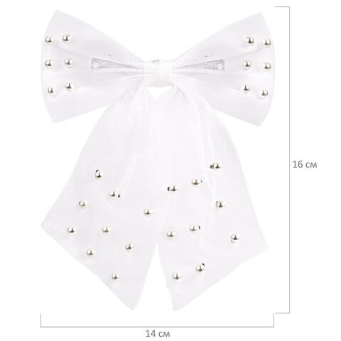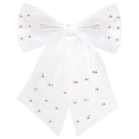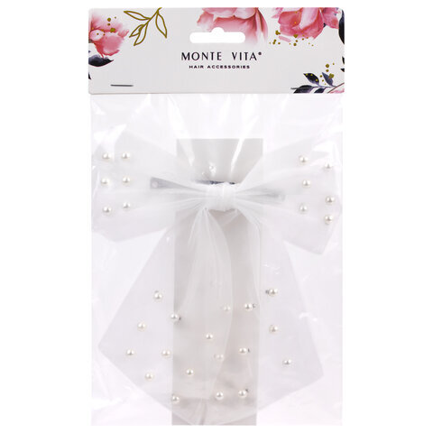 Заколка для волос 16х14 см, баретте с бантом и бусинами, белый, MONTE VITA (МОНТЕ ВИТА), 457120