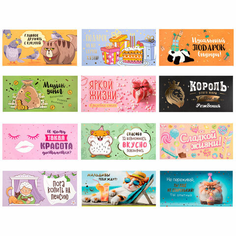Конверт для денег "Креатифф" 166х82 мм, глиттер, фольга ЗОЛОТАЯ СКАЗКА, 12 дизайнов, 116361