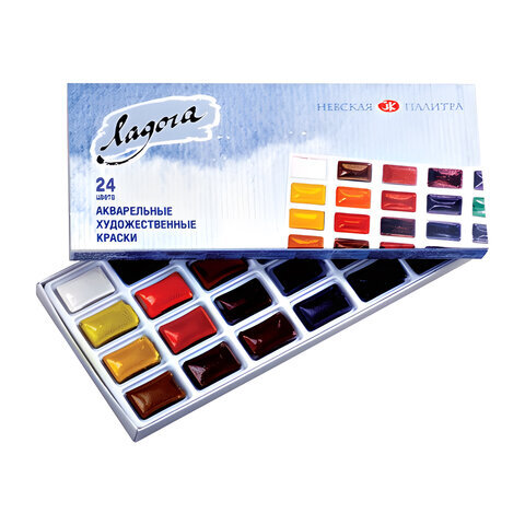Краски акварельные художественные "Ладога", 24 цвета, кювета 2,5 мл, картонная коробка, Невская Палитра, 20411912