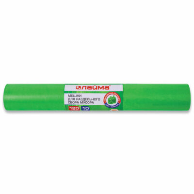 Мешки для раздельного сбора мусора 120 л зеленые в рулоне 10 шт., ПВД 38 мкм, 70х108 см, LAIMA, 606708, 3873