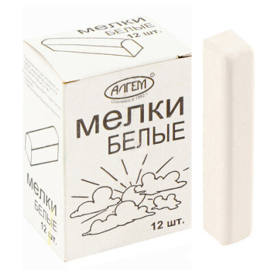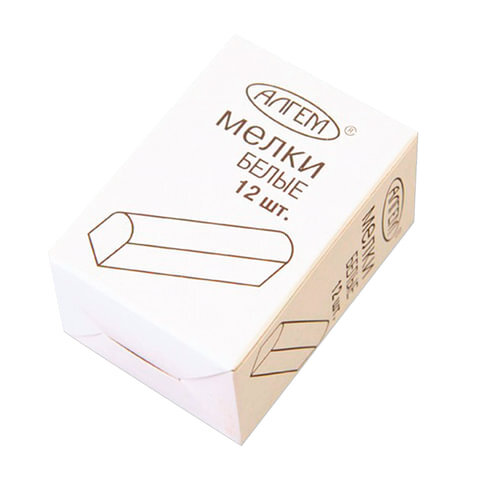 Мел белый квадратный 12 штук, АЛГЕМ, картонная упаковка, НМБ-12