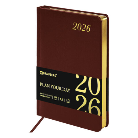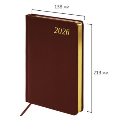 Ежедневник датированный 2026 А5 138x213 мм, BRAUBERG "Iguana", под кожу, коричневый, 117057