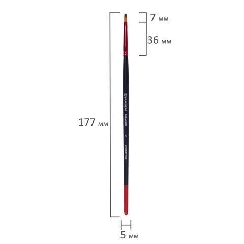 Кисть синтетика, плоская № 2, BRAUBERG PREMIUM, 201011
