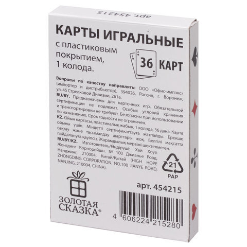 Игральные карты ЗОЛОТАЯ СКАЗКА подойдут для карточных игр, фокусов и раскладывания простых пасьянсов.
