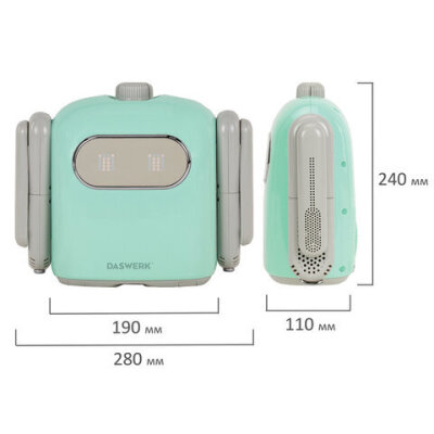 Сушилка-фен DASWERK создана для бережного и безопасного ухода за обувью, перчатками и варежками. Особая технология нагрева уничтожает неприятный запах и дезинфицирует обувь.