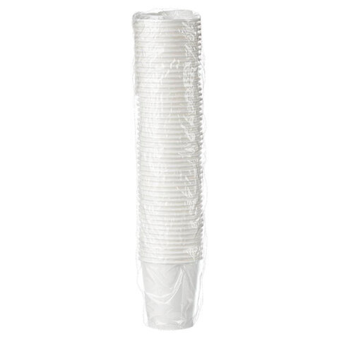 Стакан одноразовый бумажный 200/276 мл, D 80 мм, КОМПЛЕКТ 50 шт., однослойный, белый, холодное/горячее, СКАНДИПАКК, -0000, 771S70900-0000
