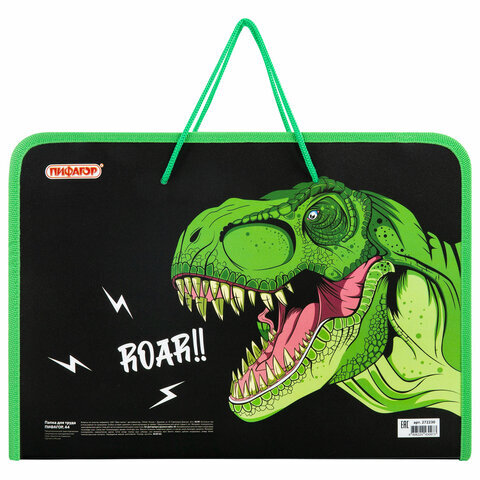 Папка для труда ПИФАГОР А4 "Dino roar" с ручками предназначена для хранения и переноски тетрадей, альбома для рисования, цветной бумаги, картона и прочих бумаг.
