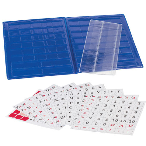 | Комплектация | заглавные буквы алфавита, знаки пунктуации, квадраты для звукового анализа слов, математические знаки, наборное полотно, русский алфавит, слоги, строчные буквы алфавита, цифры |