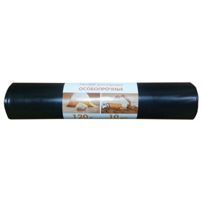 Мешки для мусора 120 л, черные, в рулоне 10 шт., ПВД, 80 мкм, 70х108 см, особо прочные, КБ, 3156