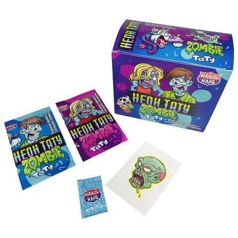 Со взрывной карамелью "НЕОН ТАТУ ЗОМБИ" КАНДИ КЛАБ вы сможете развлечь как детей, так и взрослых. Среди многообразия временных татуировок каждый найдет свою любимую.