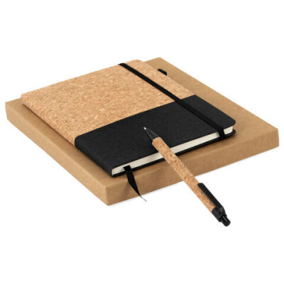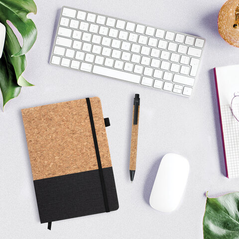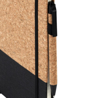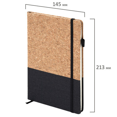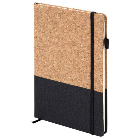 Блокнот в наборе с ручкой А5, 145х213 мм, BRAUBERG "Cork", под кожу, ЭКО обложка, 80 листов, черный, 116865