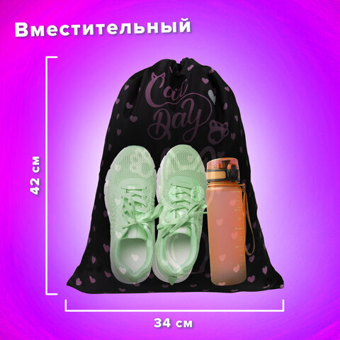 Мешок для обуви BRAUBERG KIDS, с петлей, 42х34 см, "Amazed cat", 271629