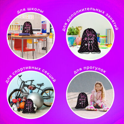 Мешок для обуви BRAUBERG KIDS – необходимый аксессуар для школы! Подходит для сменной обуви и физкультурной формы, вещей для факультативных занятий.