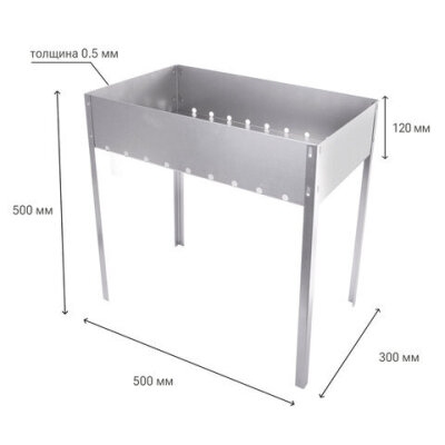 Мангал сборный стальной, размер 500х300х500 мм, в коробке, 701727