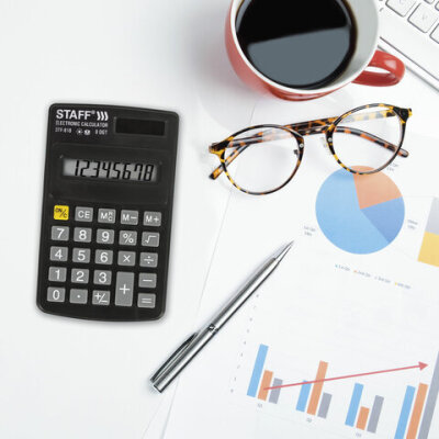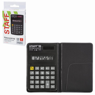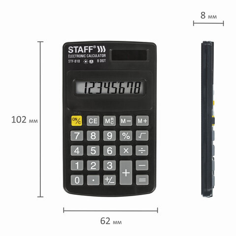 Калькулятор карманный STAFF STF-818 (102х62 мм), 8 разрядов, двойное питание, 250142