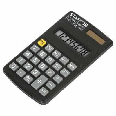 • Простой и надежный карманный калькулятор STAFF STF-818 поможет выполнить базовые вычисления везде, где Вам понадобится. Калькулятор легко помещается в карман и удобно лежит в руке.