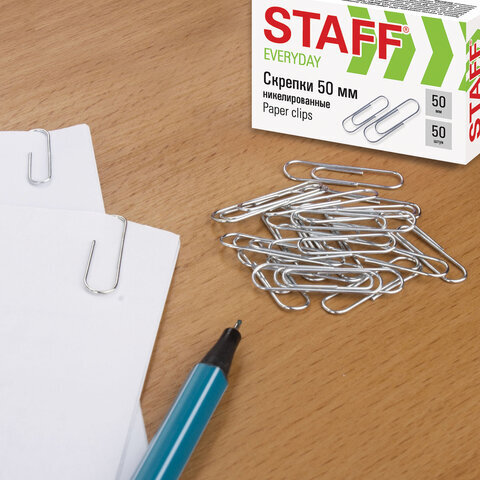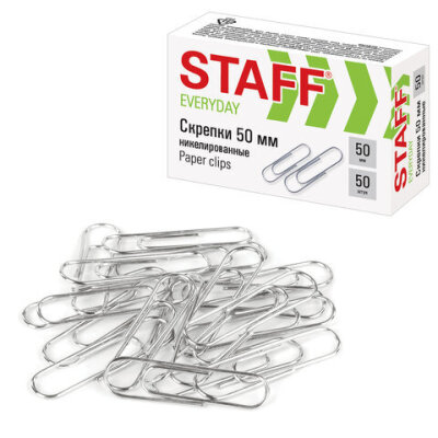 Скрепки большие 50 мм, STAFF "EVERYDAY", никелированные, 50 шт., в картонной коробке, 226759