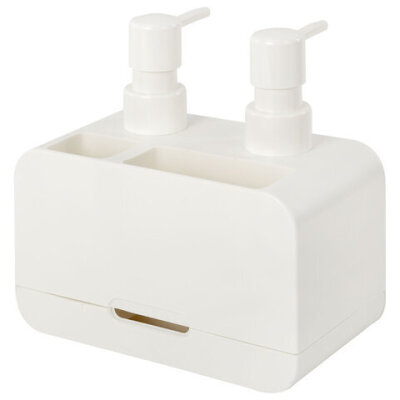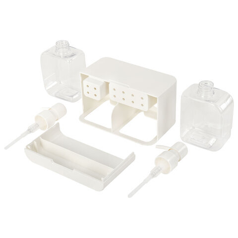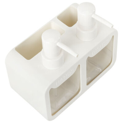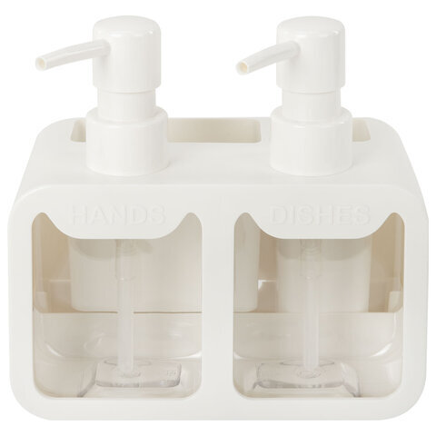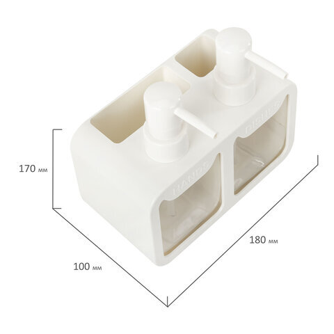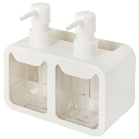 Дозатор DOUBLE для мыла/геля и моющего средства/шампуня, 2х350 мл, органайзер для губок и щеток, БЕЛЫЙ, 10х18х17 см, LAIMA HOME, 700044