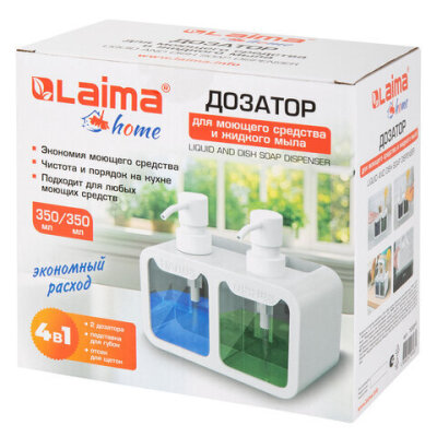 Диспенсер для моющих средств LAIMA HOME – идеальное решение для кухни и ванной комнаты. Сочетая в себе функциональность и стиль, он позволяет одновременно хранить два средства. Легкость наполнения и эргономичность сделают Ваш дом максимально комфортным.