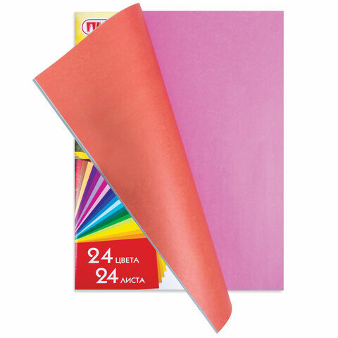 Цветная бумага А4 газетная, 24 листа, 24 цвета, на скобе, ПИФАГОР, 200х283 мм, "Совенок", 128003