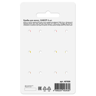 Крабы для волос НАБОР 6 шт., 2,5 см, soft touch, АССОРТИ, MONTE VITA (МОНТЕ ВИТА), 457029