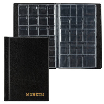 Альбом нумизмата для 138 монет, 125х185 мм, ПВХ, черный, STAFF, 238078