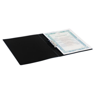 Папка с боковым металлическим прижимом BRAUBERG стандарт, черная, до 100 листов, 0,6 мм, 221630