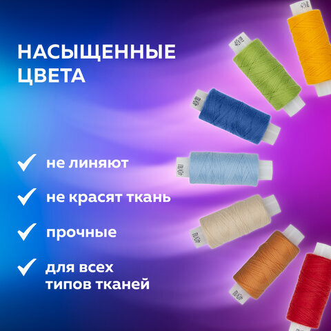 Набор ниток ОСТРОВ СОКРОВИЩ характеризуется высоким качеством исполнения. Нитки в наборе применяются для всех видов одежды, обладают отличными пошивочными свойствами и подходят как для ручного шитья, так и для всех видов швейных машин.