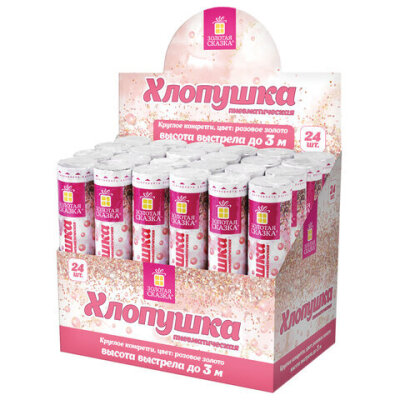 Хлопушка пневматическая 20 см "ВОЛШЕБСТВО" фольга, круги, розовое золото, ЗОЛОТАЯ СКАЗКА, 592468