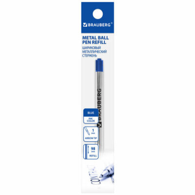 Стержень шариковый BRAUBERG, тип PARKER, металлический, 98 мм, линия письма 0,5 мм, подвес, синий, 170199