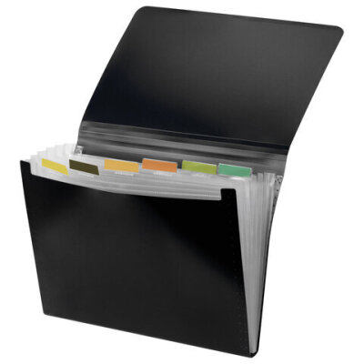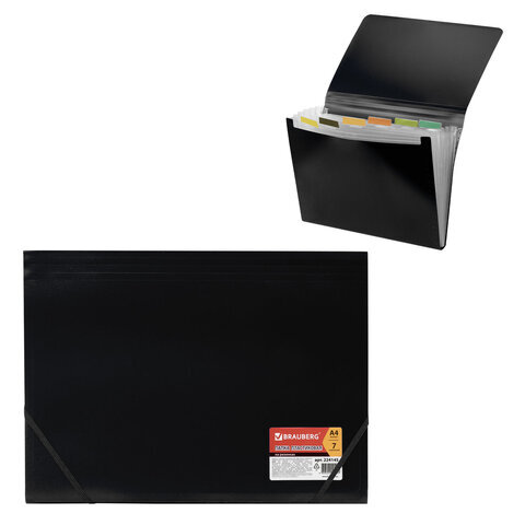 Папка на резинках BRAUBERG "Business", А4, 7 отделений, пластиковый индекс, черная, 0,5 мм, 224145