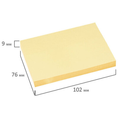 Блок самоклеящийся (стикеры) BRAUBERG, ПАСТЕЛЬНЫЙ, 76х102 мм, 100 листов, желтый, 122691