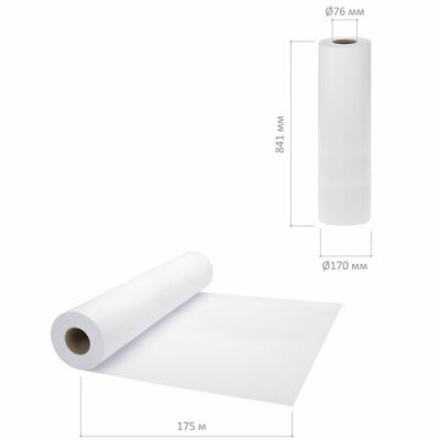 Бумага широкоформатная рулон для плоттера, 841 мм х 175 м х втулка 76 мм, 80 г/м2, белизна CIE 146%, BRAUBERG, 110457