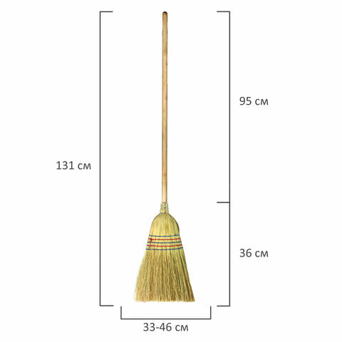 Веник-метла сорго LAIMA 2, натуральный, прошивной, с деревянным черенком 95 см, большой, 450х330 мм, 602463