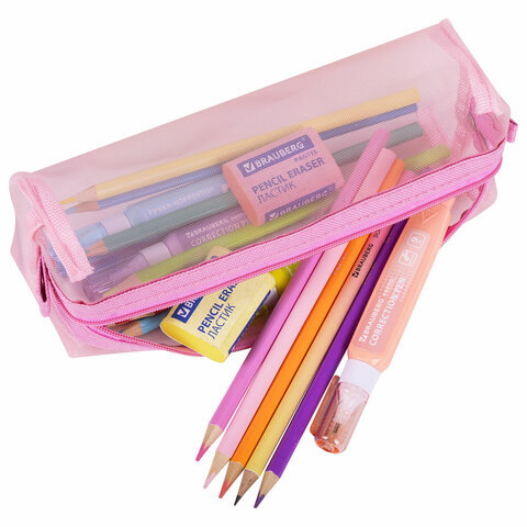Пенал-тубус BRAUBERG, сетка, 22х5х5 см, розовый, 272235