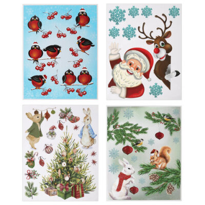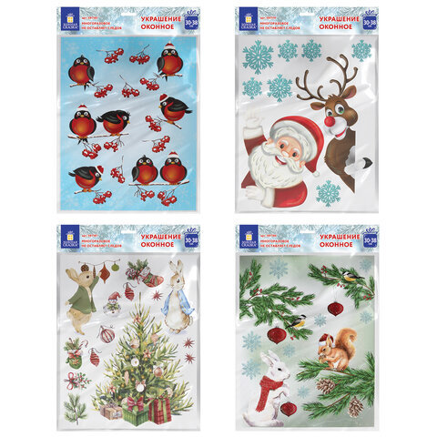 Наклейка для окон (1 штука) двусторонняя МНОГОРАЗОВАЯ 30х38 см, "Ассорти № 1", ЗОЛОТАЯ СКАЗКА, 591921
