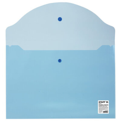 Папка-конверт с кнопкой STAFF, А4, до 100 листов, прозрачная, синяя, 0,12 мм, 224623