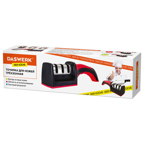 Точилка для ножей (ножеточка) ручная, трёхзонная (грубая, чистовая, шлифовка) DASWERK (ДАСВЕРК), 608134