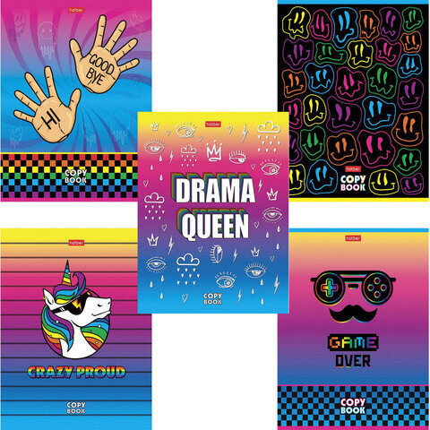 Тетрадь А5, 48 л., HATBER, скоба, клетка, обложка картон, "CrazyColor" (5 видов в спайке), 48Т5В1