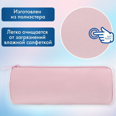Пенал-тубус BRAUBERG, с эффектом Soft Touch, мягкий, пастельно-розовый, 22х8 см, 272299