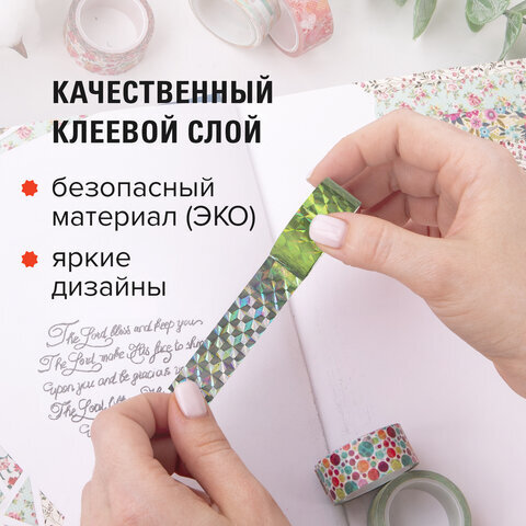 Клейкие ленты 15 мм х 5 м, декоративные голографические, ОСТРОВ СОКРОВИЩ, комплект 6 шт., ассорти №2, 227276