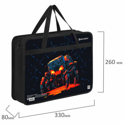 Папка на молнии с ручками BRAUBERG "Fire spider" предназначена для транспортировки и хранения канцелярских принадлежностей и учебных пособий. Она защищает содержимое от замятий и повреждений. Идеально подходит для внешкольных занятий.