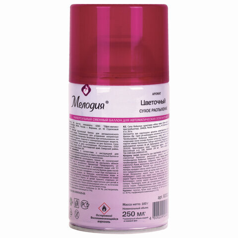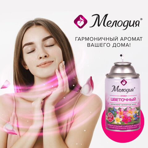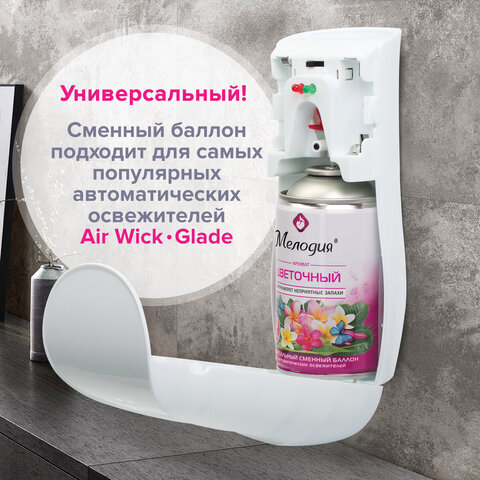Сменный баллон 250 мл МЕЛОДИЯ "Цветочный", для автоматических освежителей, универсальный, 605230