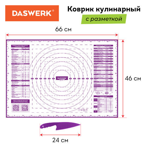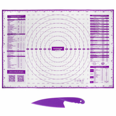 Коврик силиконовый для раскатки/запекания 46х66 см, фиолетовый, ПОДАРОК пластиковый нож, DASWERK (ДАСВЕРК), 608427