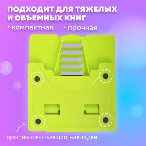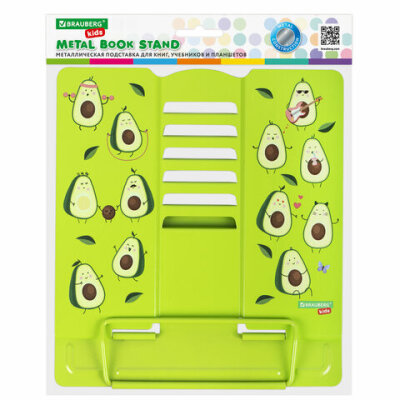 Подставка для книг и учебников BRAUBERG KIDS "Avocado", регулируемый угол наклона, металл, 238052