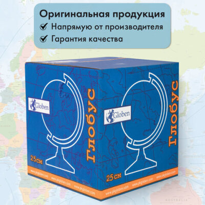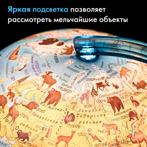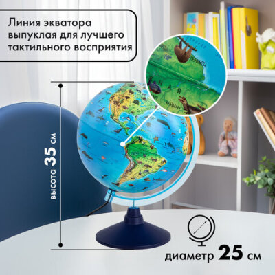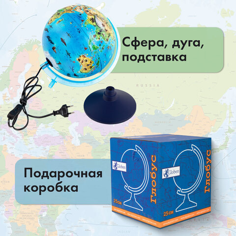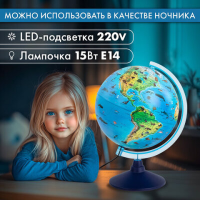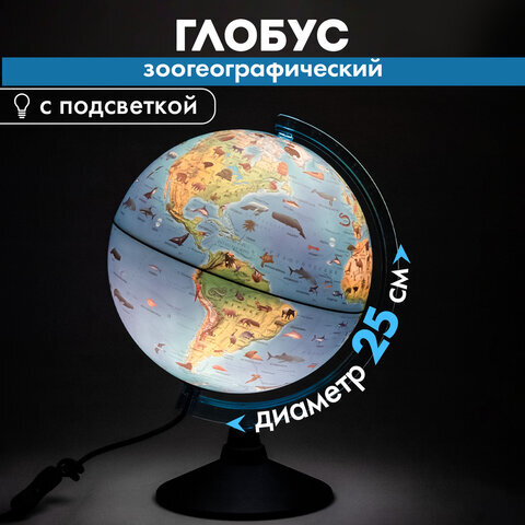 Глобус зоогеографический GLOBEN "Классик Евро", 25 см, с подсветкой, детский, Ке012500270